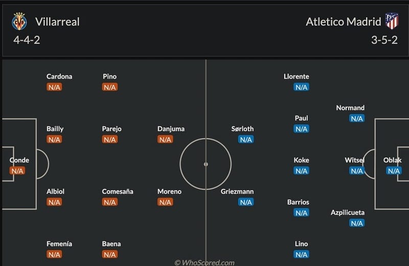 Đội hình dự kiến Villarreal vs Atletico Madrid