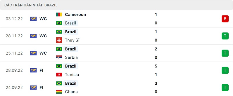 Ở trận tới, Brazil nhiều khả năng sẽ chào đón sự trở lại của nhạc trưởng Neymar. Cùng với các ngôi sao như Richarlison, Vinicius Junior hay Casemiro, họ đã sẵn sàng khoan thủng hàng thủ Hàn Quốc. Thống kê cho thấy rằng trước trận thua dưới tay Cameroon, các học trò của HLV Tite đã ghi bàn và giành 9 thắng lợi liên tiếp.