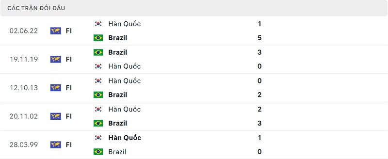 Thành tích đối đầu Brazil vs Hàn Quốc