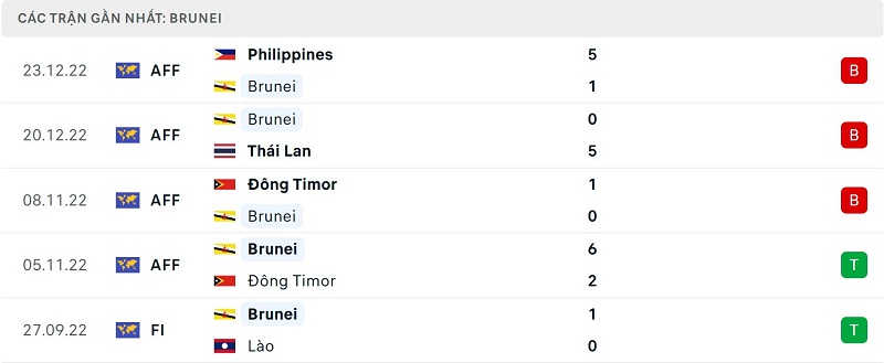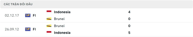 Thành tích đối đầu Brunei vs Indonesia: