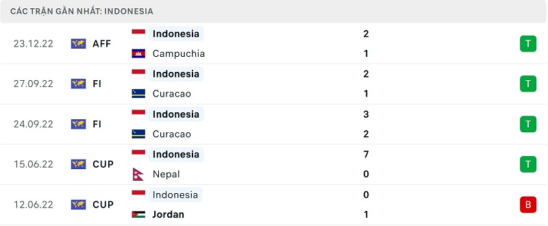 Phong độ Brunei vs Indonesia: