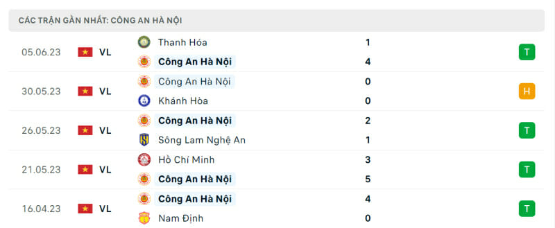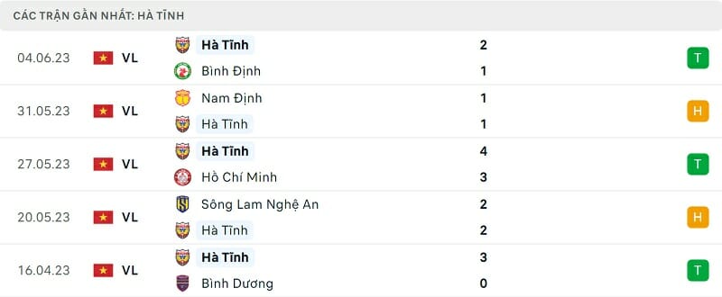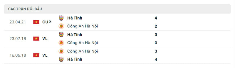 Phong độ CAHN vs Hà Tĩnh