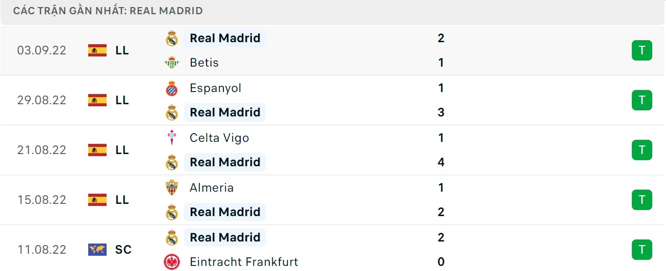 Real Madrid cho thấy họ không gặp bất cứ vấn đề gì với việc không tham gia quá nhiều trên thị trường chuyển nhượng. Bộ đôi tân binh là Rudiger và Tchouameni hòa nhập rất nhanh. Los Blancos giành siêu cúp Châu Âu và đang dẫn đầu BXH La Liga với 4 trận toàn thắng. Phong độ thăng hoa ấy dự kiến sẽ còn kéo dài với lượt trận đầu tiên của Champions League.