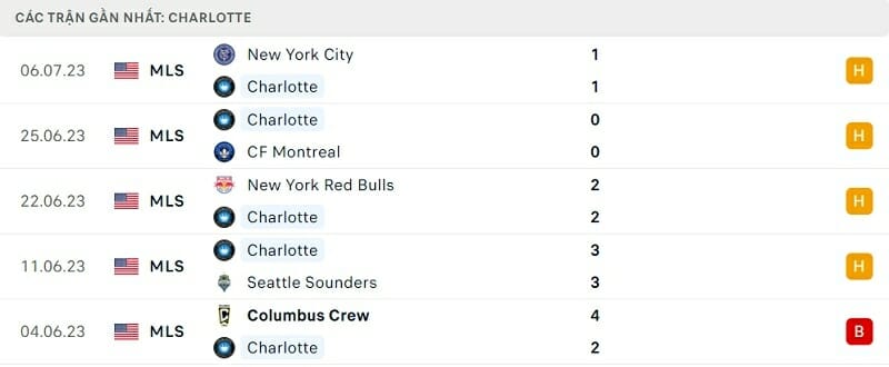 Đây mới chỉ là mùa giải thứ 2 của Charlotte tại MLS và nhìn chung họ đang thi đấu tạm ổn. Ở mùa giải năm ngoái, đội bóng Bắc Carolina cán đích ở vị trí thứ 9 chung cuộc. Đến mùa giải năm nay, họ cũng giữ vững được phong độ với 25 điểm ở vị trí thứ 10 trên BXH miền Đông. Charlotte trong 5 trận gần nhất chỉ phải nhận 1 thất bại nhưng lại hòa tới 4 trận liên tiếp. Đáng chú ý nhất trong đó là trận đấu mà Charlotte đã cầm hòa Seattle Sounders, đội bóng xếp thứ 2 ở BXH miền Tây.