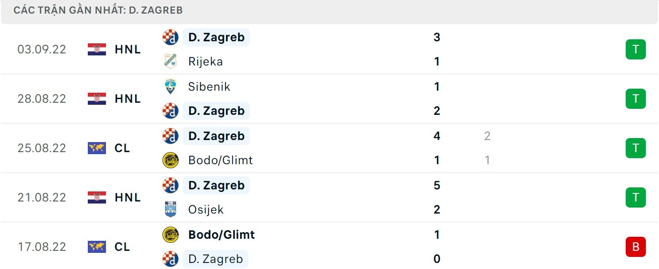 Phong độ gần đây Dinamo Zagreb vs Chelsea: