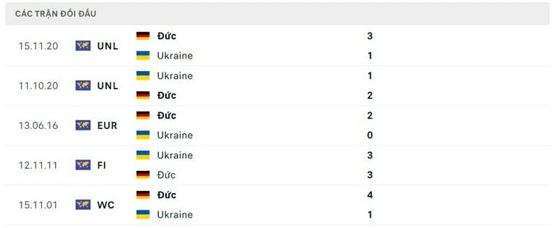 Thành tích đối đầu ĐT Đức vs ĐT Ukraine: