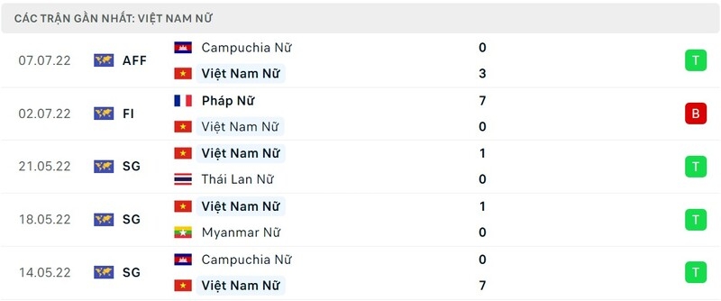 Phong độ ĐT nữ Việt Nam vs ĐT nữ Lào:
