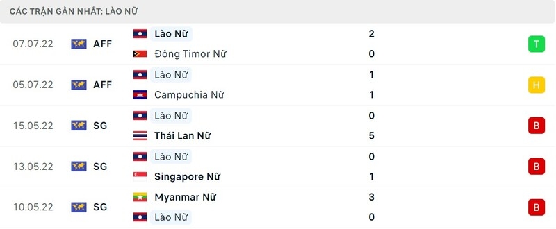 Thành tích đối đầu ĐT nữ Việt Nam vs ĐT nữ Lào: