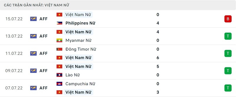 Phong độ ĐT nữ Việt Nam vs ĐT nữ Myanmar:
