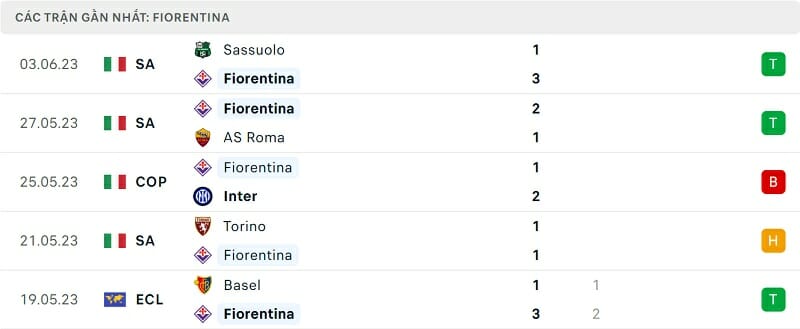 Trong khi đó, Fiorentina trở thành đội đầu tiên xuất hiện ở chung kết của 4 cúp châu Âu (European Cup – tiền thân của Champions League, UEFA Cup, UEFA Cup Winners’ Cup và Conference League). Danh hiệu gần nhất mà đội chủ sân Artemio Franchi giành được đã xuất hiện cách đây hơn 20 năm, đó là Coppa Italia 2000/01.