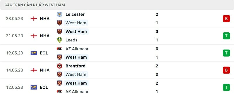 Mùa giải 2022/23 chứng kiến hai bộ mặt trái ngược của West Ham United. Tại Ngoại hạng Anh, họ thi đấu bết bát và rơi xuống vị trí thứ 14. Nhưng ở Conference League, thầy trò HLV David Moyes chưa nhận thất bại nào (thắng 13, hòa 1) trên đường tiến vào trận đấu cuối cùng.