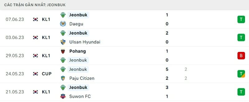 Phong độ thi đấu Gangwon vs Jeonbuk