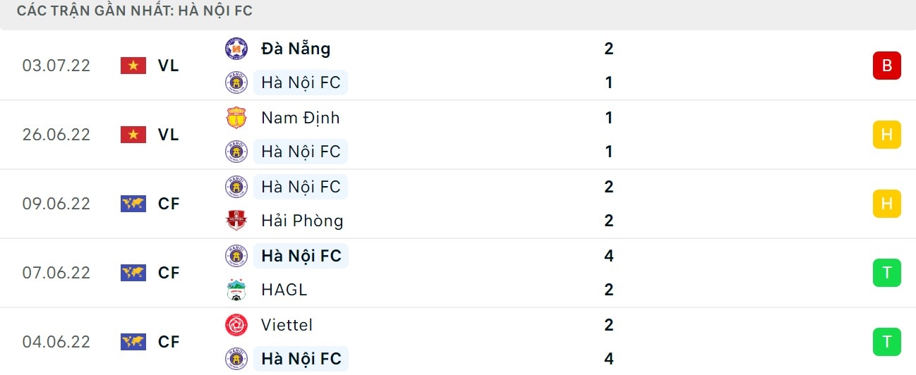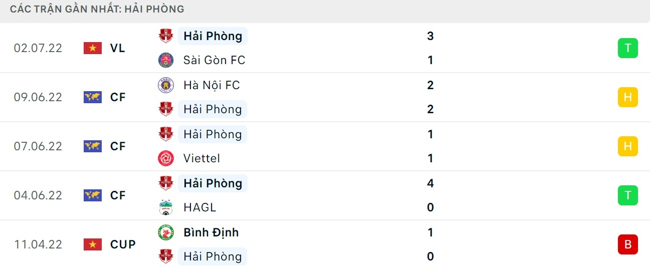 Phong độ gần đây Hà Nội vs Hải Phòng: