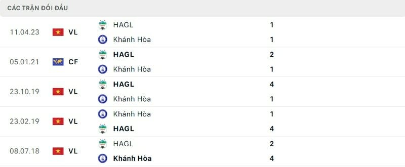 Thành tích đối đầu HAGL vs Khánh Hòa