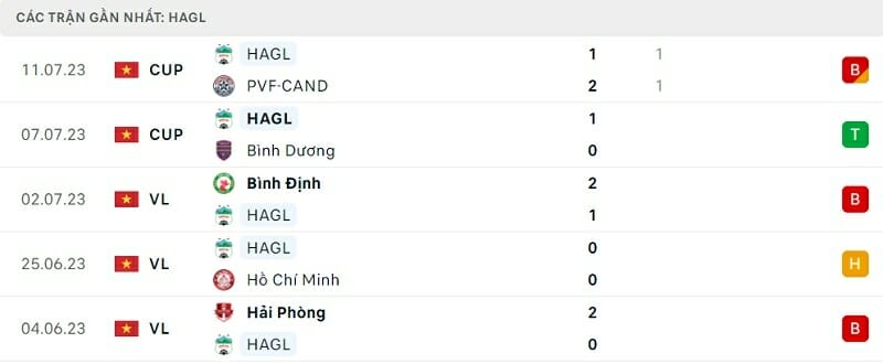 Phong độ thi đấu HAGL vs Khánh Hòa