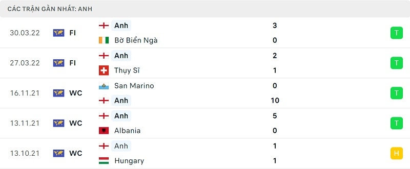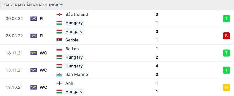 Phong độ Hungary vs Anh: