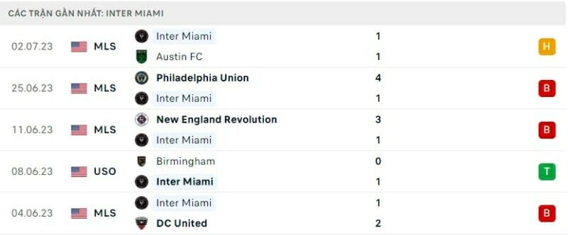 Bước sang mùa giải năm nay, tình hình của họ thậm chí còn tệ hơn khi đang đứng cuối BXH, chỉ có được 16 điểm sau 19 trận. Phong độ của Inter Miami là hết sức tệ hại khi trải qua 9 trận liên tiếp không thắng, trong đó nhận đến 8 thất bại.