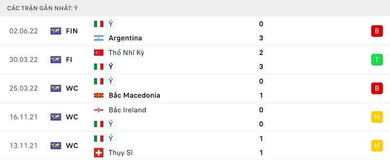 Mới nhất, Italia cũng đã thất bại toàn diện 0-3 trước Argentina trong trận Siêu cúp Liên lục địa (Finalissima). Với 4 trận đấu chỉ trong 10 ngày tới, thầy trò Roberto Mancini sẽ cần sớm quên đi thất bại tại Wembley vừa qua để trở lại với đúng vị thế. Dẫu vậy, phong độ của đội bóng này đang là không tốt. Bonucci và đồng đội đã thua 2 trong 5 trận gần nhất và chỉ giành được duy nhất 1 chiến thắng. Rõ ràng việc gặp Đức thời điểm này là vô cùng xui xẻo cho binh đoàn áo xanh.