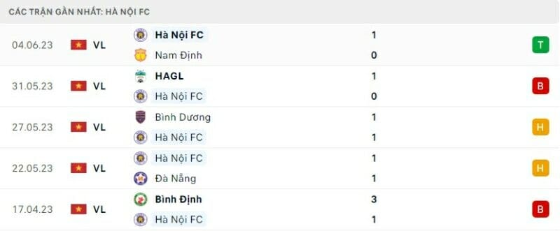 Phong độ Hà Nội FC
