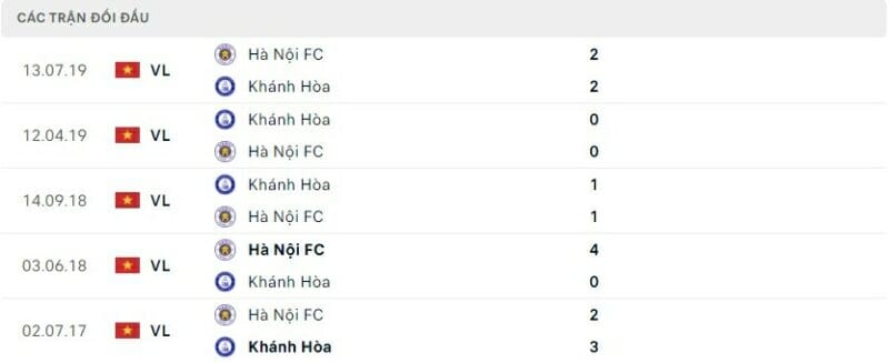 Đối đầu Khánh Hòa vs Hà Nội FC