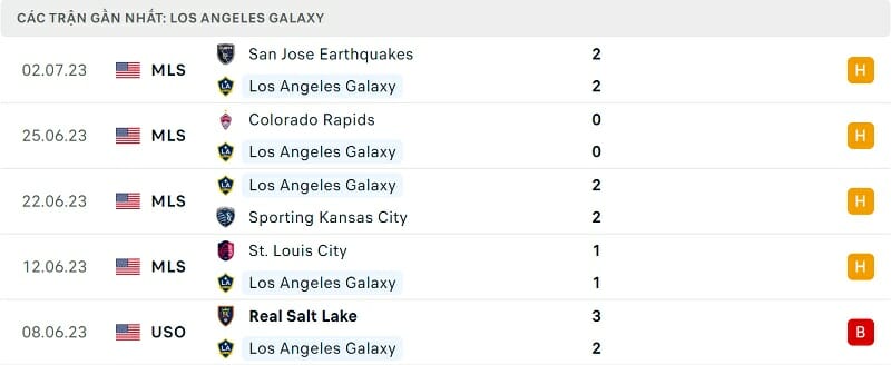 Trong 4 trận gần nhất, LA Galaxy toàn hòa. Sân nhà chẳng phải đất thiêng của họ với 4 thất bại sau 9 trận kể từ đầu mùa. Niềm tin dành cho tập thể áo trắng có lẽ chỉ đến từ việc đối thủ Los Angeles FC cũng không có phong độ tốt (thua 4/7 trận vừa qua).