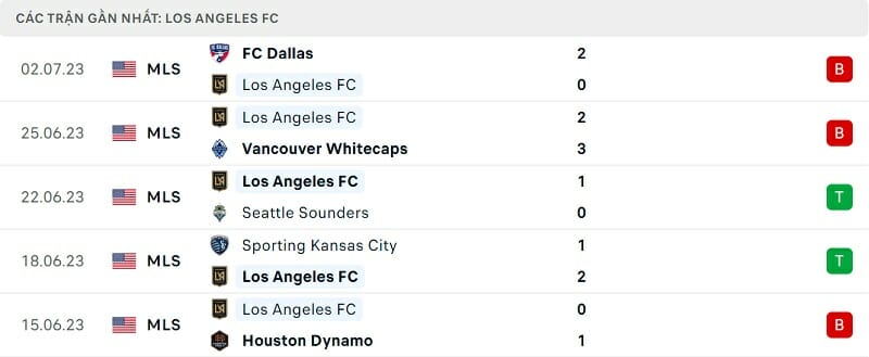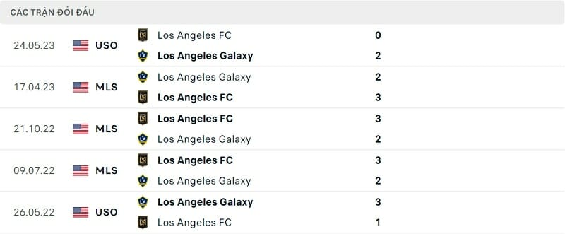 Thành tích đối đầu LA Galaxy vs Los Angeles FC