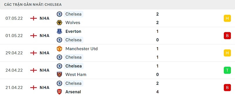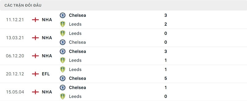 Thành tích đối đầu trong cuộc đấu này đang nghiêng hoàn toàn về phía đội chủ sân Stamford Bridge. Trong 5 lần gặp nhau gần nhất, Chelsea đang bất bại và có đến 4 chiến thắng. Vì thế, đây sẽ là cơ hội không thể tốt hơn để thầy trò Thomas Tuchel tìm lại phong độ và sự tự tin trước khi bước vào cuộc chiến với Liverpool tại chung kết cúp FA ít ngày sau đó.