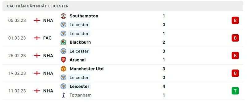 Thậm chí trong cả ba trận thua tại giải đấu hàng đầu xứ sở sương mù, Leicester còn không ghi được bàn thắng nào. Thành tích tệ hại này đã khiến Bầy cáo rơi xuống vị trí thứ 15 trên bảng xếp hạng và chỉ hơn nhóm xuống hạng 2 điểm.