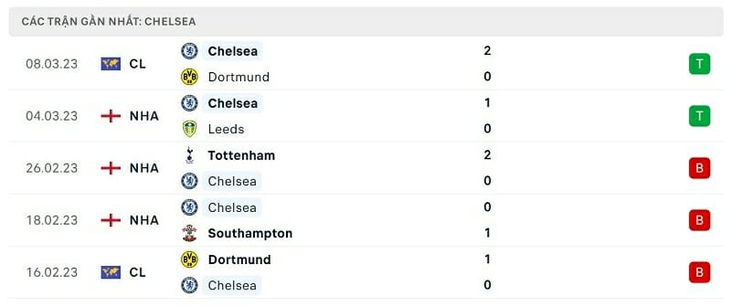Phong độ gần đây Leicester vs Chelsea: