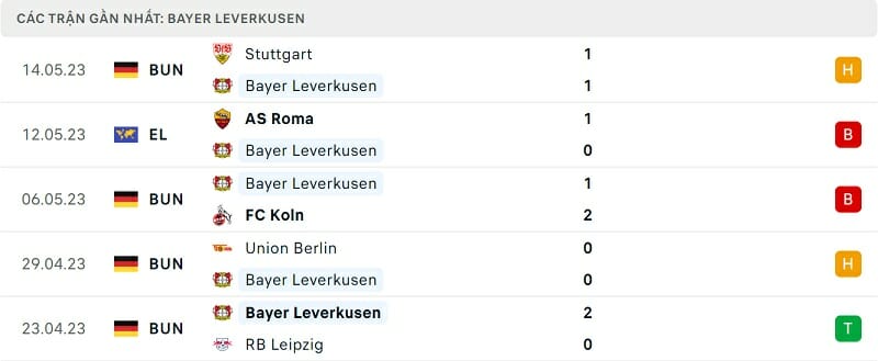 Sau tháng Ba và tháng Tư đầy thăng hoa, Bayer Leverkusen trải qua nửa đầu tháng Năm với phong độ kém cỏi. Trong 4 trận gần nhất, họ chỉ ghi được 2 bàn, nhận 2 thất bại và 2 lần bị cầm chân.
