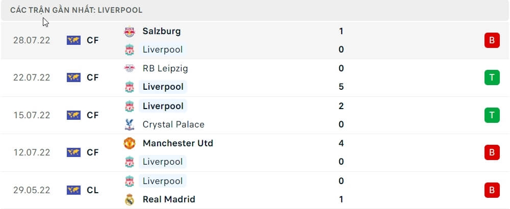 Trên thị trường chuyển nhượng, họ đã chiêu mộ bản hợp đồng bom tấn Darwin Nunez với hy vọng làm mới hàng công sau sự ra đi của Mane. Lữ Đoàn Đỏ cũng rất tích cực thi đấu giao hữu trước thềm mùa giải. Họ thắng 2 và thua 2 trong các trận với Man Utd, Crystal Palace, RB Leipzig và Salzburg.