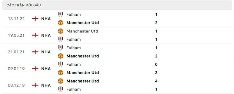 Thành tích đối đầu Man United vs Fulham: