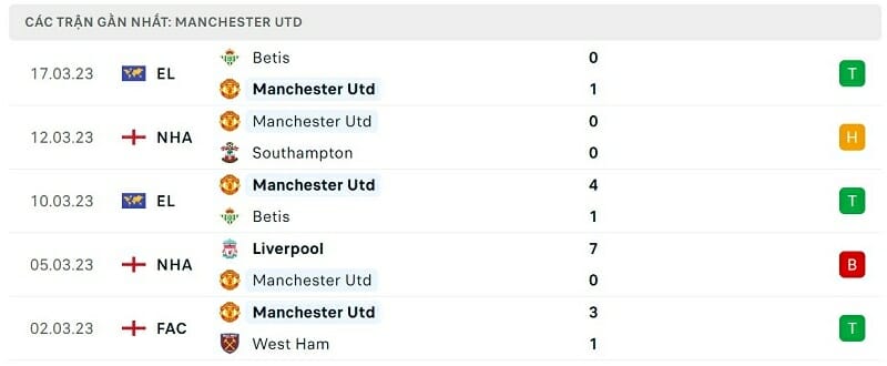 Phong độ gần đây Man United vs Fulham: