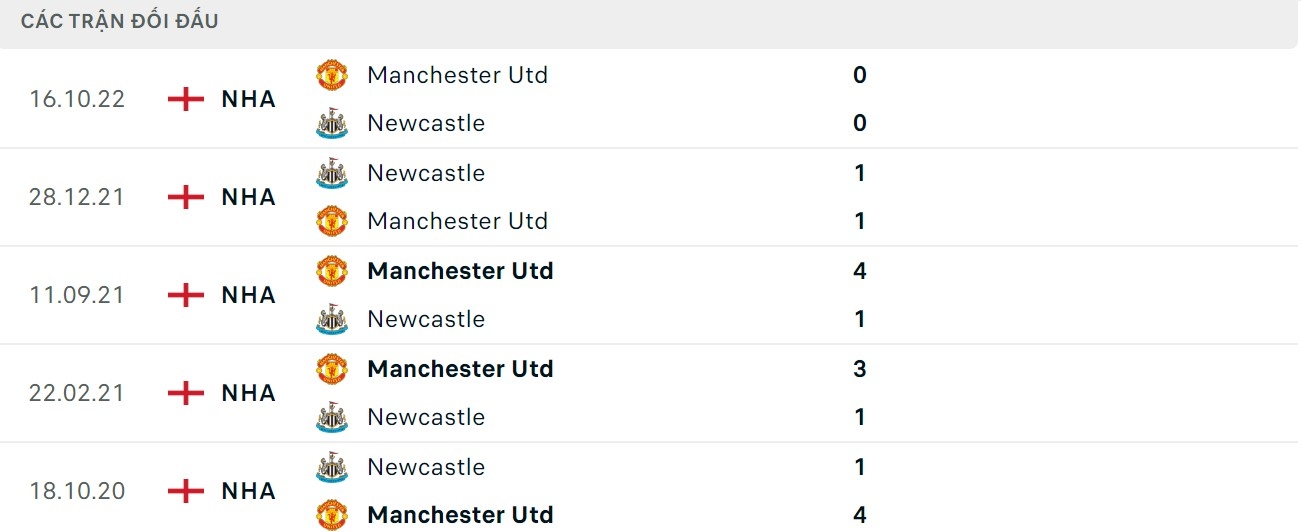 Thành tích đối đầu Man United vs Newcastle: