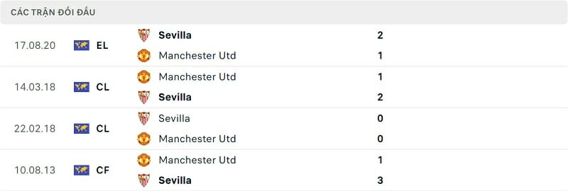 Tại Europa League, Sevilla đá 2 trận trên sân khách nhưng thua cả 2. Trong khi đó, Man United lại chơi ổn định trên thánh địa Old Trafford. Thất bại duy nhất của “Quỷ đỏ” ở sân nhà trong khuôn khổ cúp châu Âu đã diễn ra hồi đầu mùa (thua Real Sociedad).