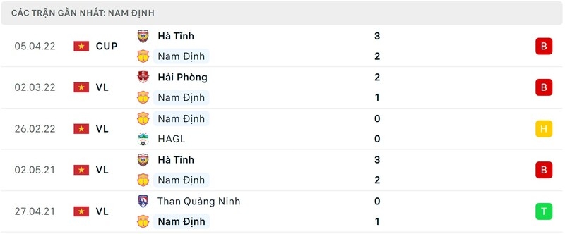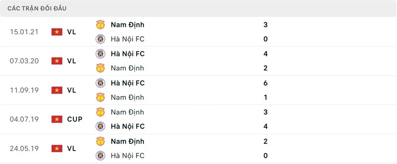 Thành tích đối đầu Nam Định vs Hà Nội: