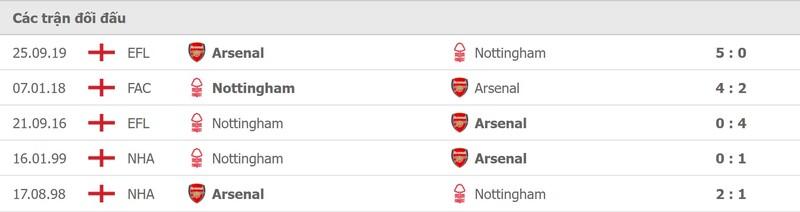 Thành tích đối đầu Nottingham Forest vs Arsenal: