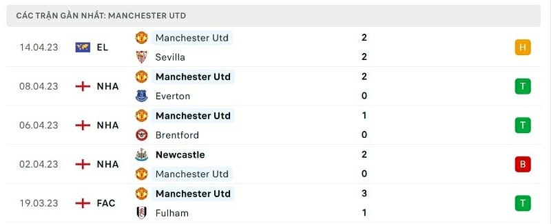 Thành tích đối đầu Nottingham Forest vs Man United: