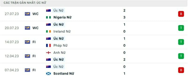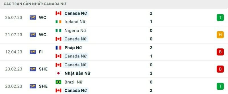 Thành tích đối đầu nữ Canada vs nữ Australia