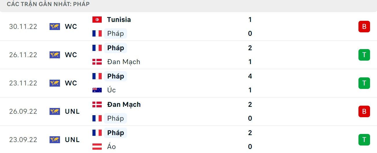 Cặp đấu này rất khan hiếm bàn thắng trong quá khứ. Trong 5 lần đụng độ gần nhất, có đến 2 trận hòa 0-0 và 3 trận có tỷ số 1-0. Một chiến thắng nhẹ nhàng cho Pháp là kịch bản mà nhiều người đã mường tượng đến.