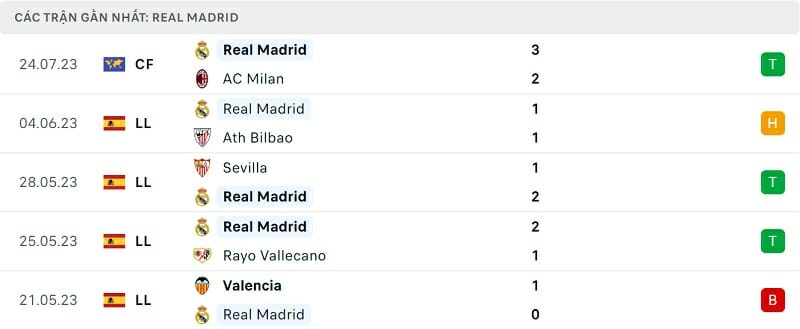 Phong độ Real Madrid vs Man United