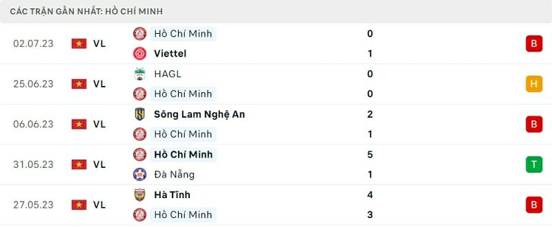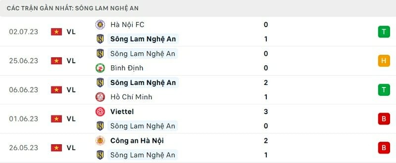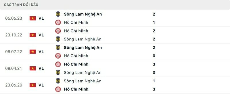 Phong độ thi đấu SLNA vs TP.HCM