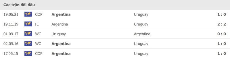 Thành tích đối đầu Argentina vs Uruguay: