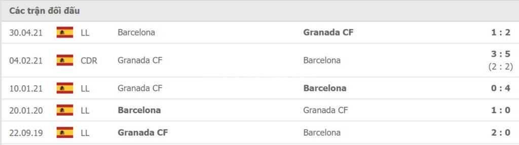 Lịch sử đối đầu Barcelona vs Granada: