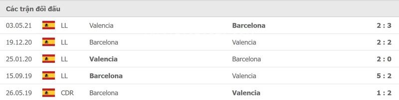 Thành tích đối đầu Barcelona vs Valencia: