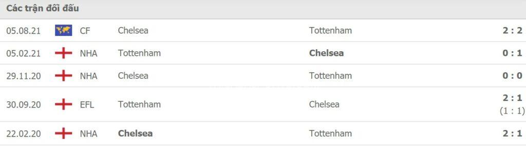 Thành tích đối đầu Tottenham vs Chelsea: