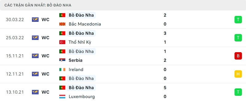 Bên kia chiến tuyến, Bồ Đào Nha đã phải trải qua vòng play-off để có vé dự World Cup 2022. Cristiano Ronaldo và đồng đội đánh bại Thổ Nhĩ Kỳ 3-1 ở bán kết trước khi vượt qua nốt Bắc Macedonia 2-0 trong trận chung kết. Thầy trò Fernando Santos sẽ đối đầu Ghana, Hàn Quốc và Uruguay tại bảng H vào cuối năm nay. Đây dự kiến sẽ là một bảng đấu không quá khó khăn dành cho đội bóng đến từ bán đảo Iberia.