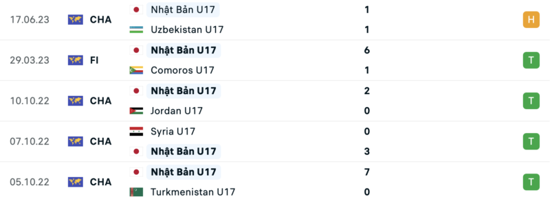 Phong độ gần đây U17 Việt Nam vs U17 Nhật Bản: