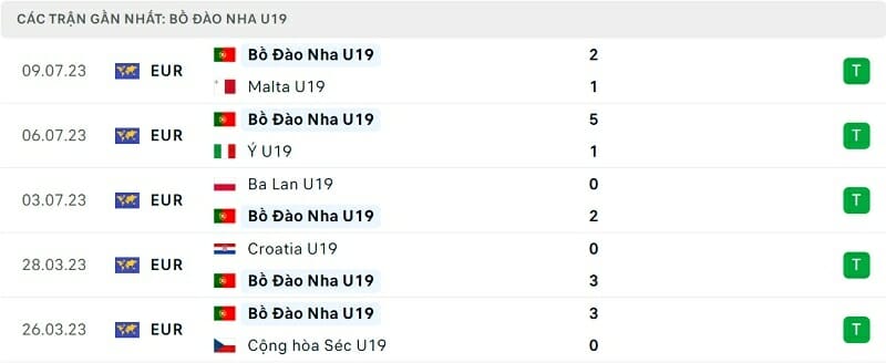 Phong độ U19 Bồ Đào Nha vs U19 Na Uy
