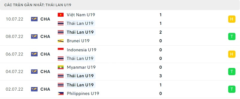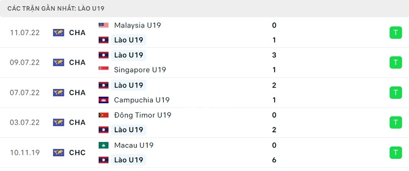 Phong độ thi đấu U19 Lào vs U19 Thái Lan: